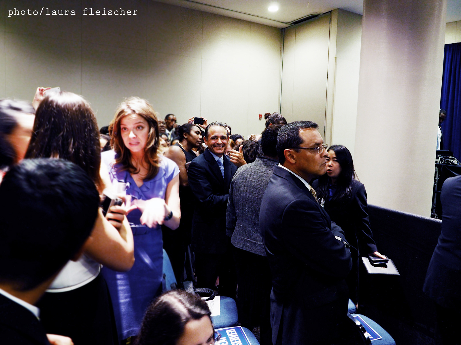 Candid images of President Obama's visit to the Dept. of Housing & Urban Development Headquarters on July 31, 2014. A brief speech, a thank you to Shaun Donovan, former HUD Secretary, and a welcome to the 16th Secretary of Housing, Julian Castro. Opting to stand in line hours in advance of doors opening, I entered the small auditorium and headed to the left of the stage hoping to find a great spot to hold my camera above my head. As the crowd swelled, I was pushed closer to the front, placing me in a most perfect spot to capture the excitement of the crowd, the off-stage moments as political appointees and politicians mingled feet away from me, and an amazing angle to capture the President. Yes, I shook the President's hand! Images: Olympus OM-D & Iphone w/ Photoshop + Totally Rad RadLab processing.